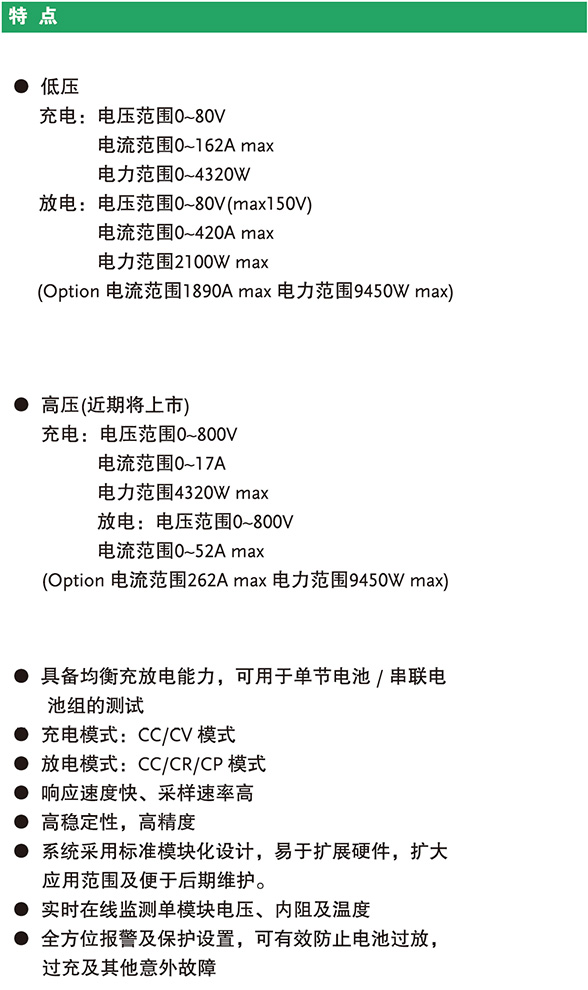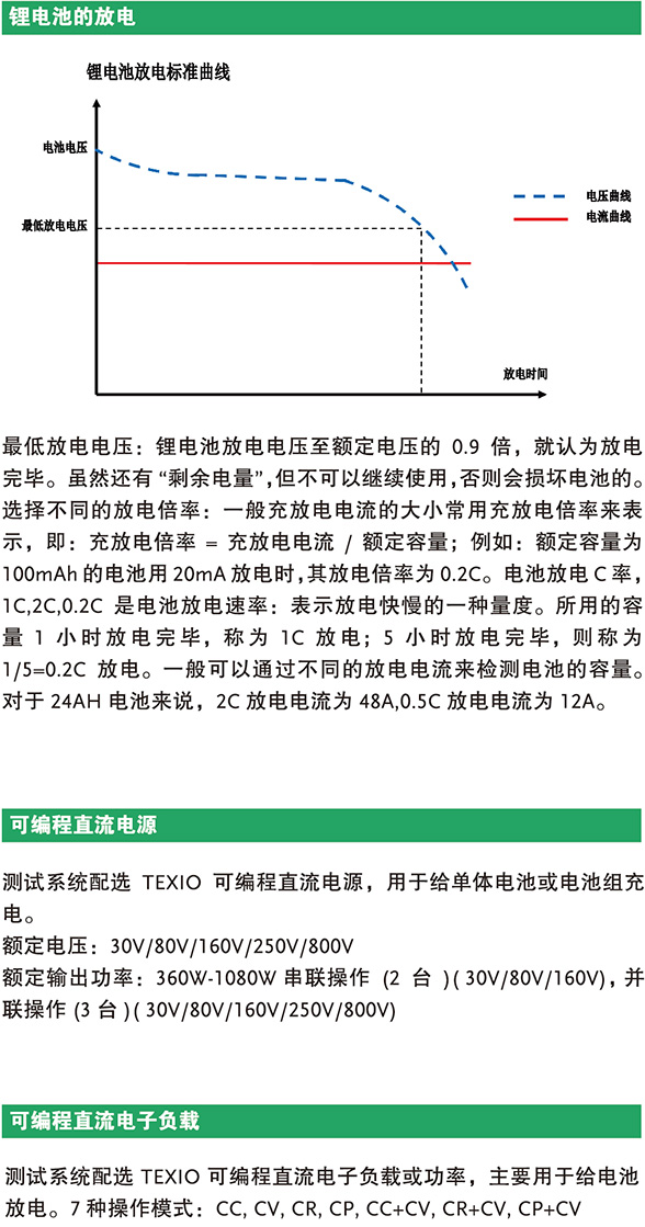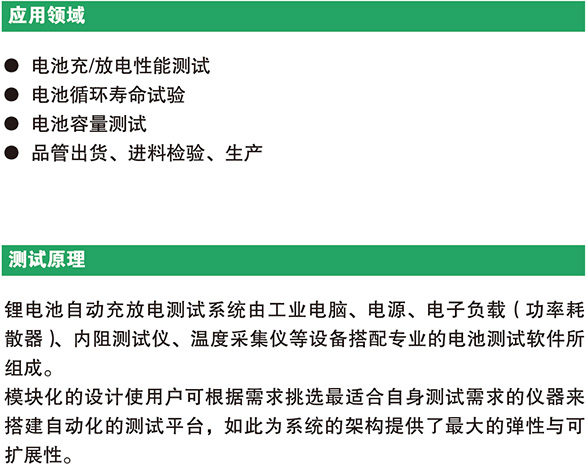 鋰電池自動充放電測試系統通過對鋰電池連續多次的充放電試驗評估電池的性能。支持CC/CP/CR/放電模式,CC/CV充電模式,內阻測試功能。同時,可描述充放電曲線,保護內阻、容量、電壓、電流等參數,對電池進行全面的分析。