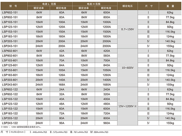 LSP系列大功率直流電子負(fù)載的功率范圍6KW~24KW,電壓規(guī)格150V/600V/1200V.支持最多并聯(lián)8臺(tái),最大192KW的大容量放電試驗(yàn)。可用于大型高壓電池開發(fā)、EV充電…等多種智慧能源的測(cè)試。